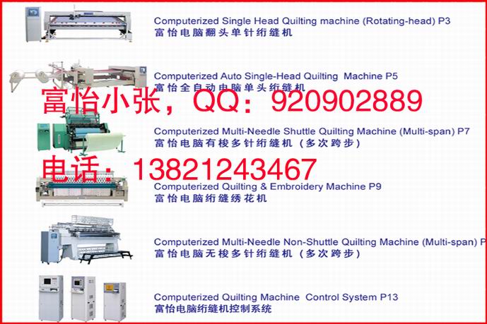 | 10富怡電腦絎縫機主要特色1,集電腦繡花與絎縫于一體,線條均勻、流暢、自然而美觀2,進口直線導軌,輕量化鞍架機構,提高絎繡精度3,自動換色,絎縫、繡花任意選4,Y向無限連續(xù)絎繡,采用進口張力電機控制。實施均勻送料5,XY伺服電機,保證機器高速運轉與精確繡做6,彩色夜晶顯示7,觸摸屏操作,圖形化界面,生動直觀十八、富怡全自動電腦單針絎縫機主要特色1、自動送料、拉布、絎縫、裁切。2、當班產(chǎn)量計數(shù)、總產(chǎn)量計數(shù),花樣效果顯示、加工軌跡顯示、自動剪線、自動提針、斷線自動停機等功能:3、具有360°(180°)獨立跳花功能,可絎200多種花樣。4、跨步絎縫:可進行各種跨步絎縫作業(yè)。5、斷線檢測:自動斷線檢測、回補斷線功能6、可調壓角:壓角可根據(jù)物料厚薄調高低。7、工藝設定:具有針步選擇、角度修正、花樣縮放等各種實用工藝參數(shù)的設定。8、采用日本伺服電機控制,精度更高,產(chǎn)量更多。9、進口特大旋梭使斷線率大大降低。10、具有強大記憶能力的運算電腦可精確絎縫各種復雜的圖形,間歇開機可以保持圖案的連11、續(xù)絎縫操作:噪音及震動小 |